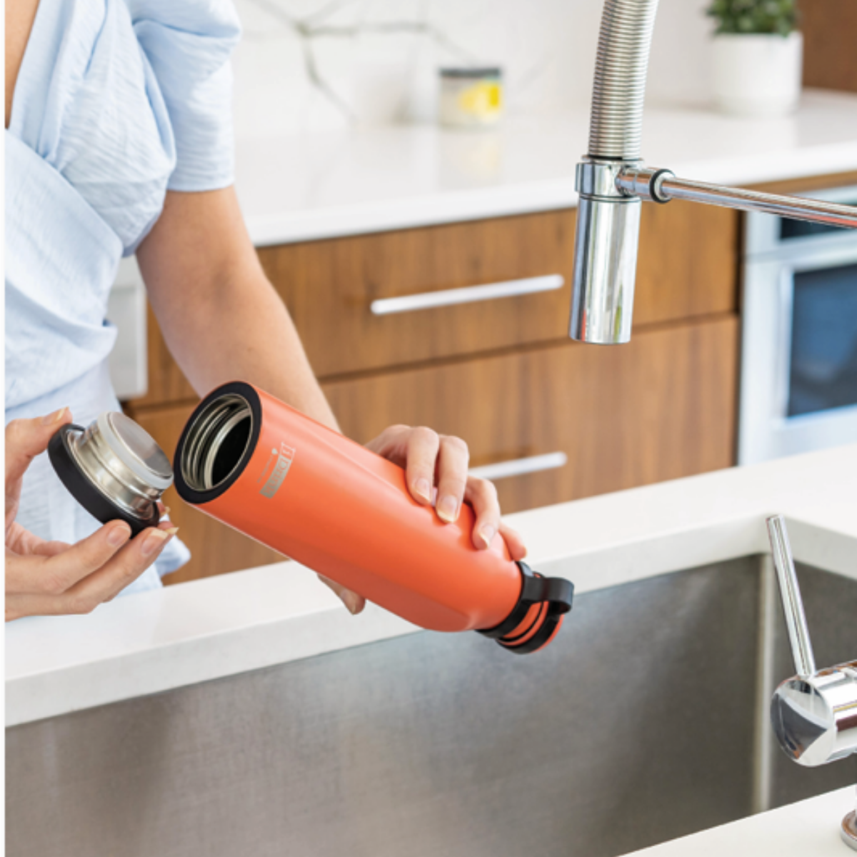 A b-evo é a “bottom-up revolution” da hidratação: tampa de rosca superior e base amovível que facilita enchimento e limpeza profunda.