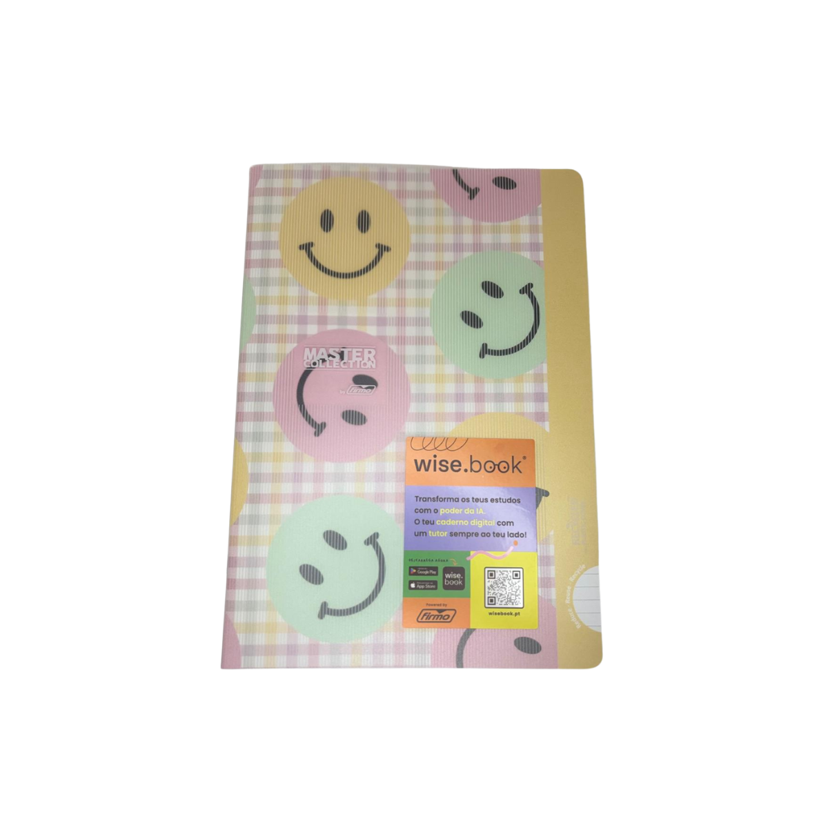 O Caderno FIRMO Agrafado Master A4 – Smiles junta estilo e praticidade para o dia a dia escolar.