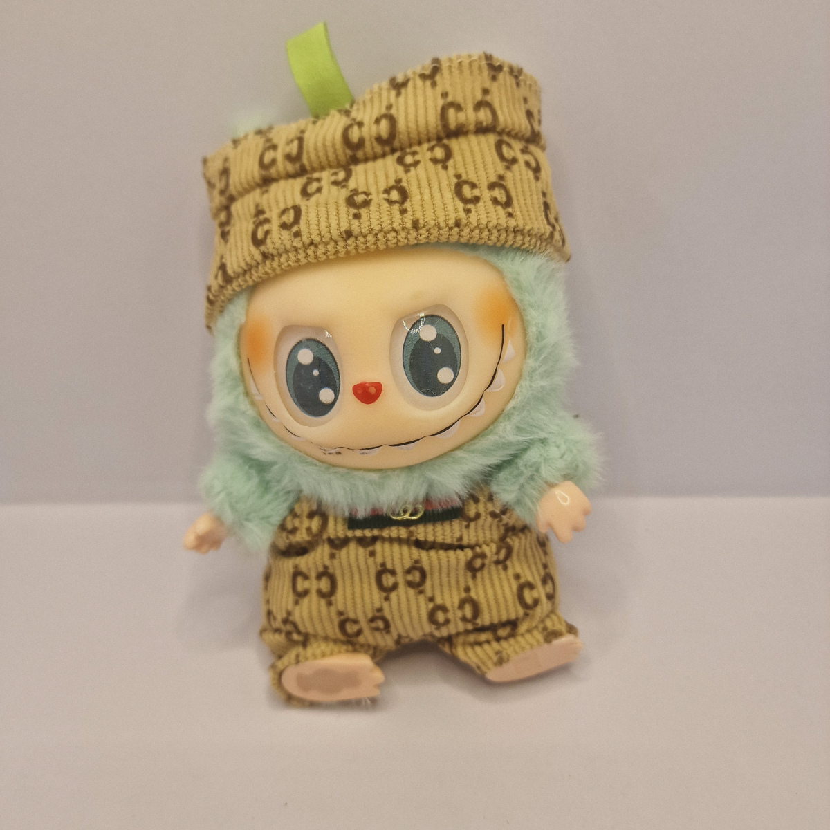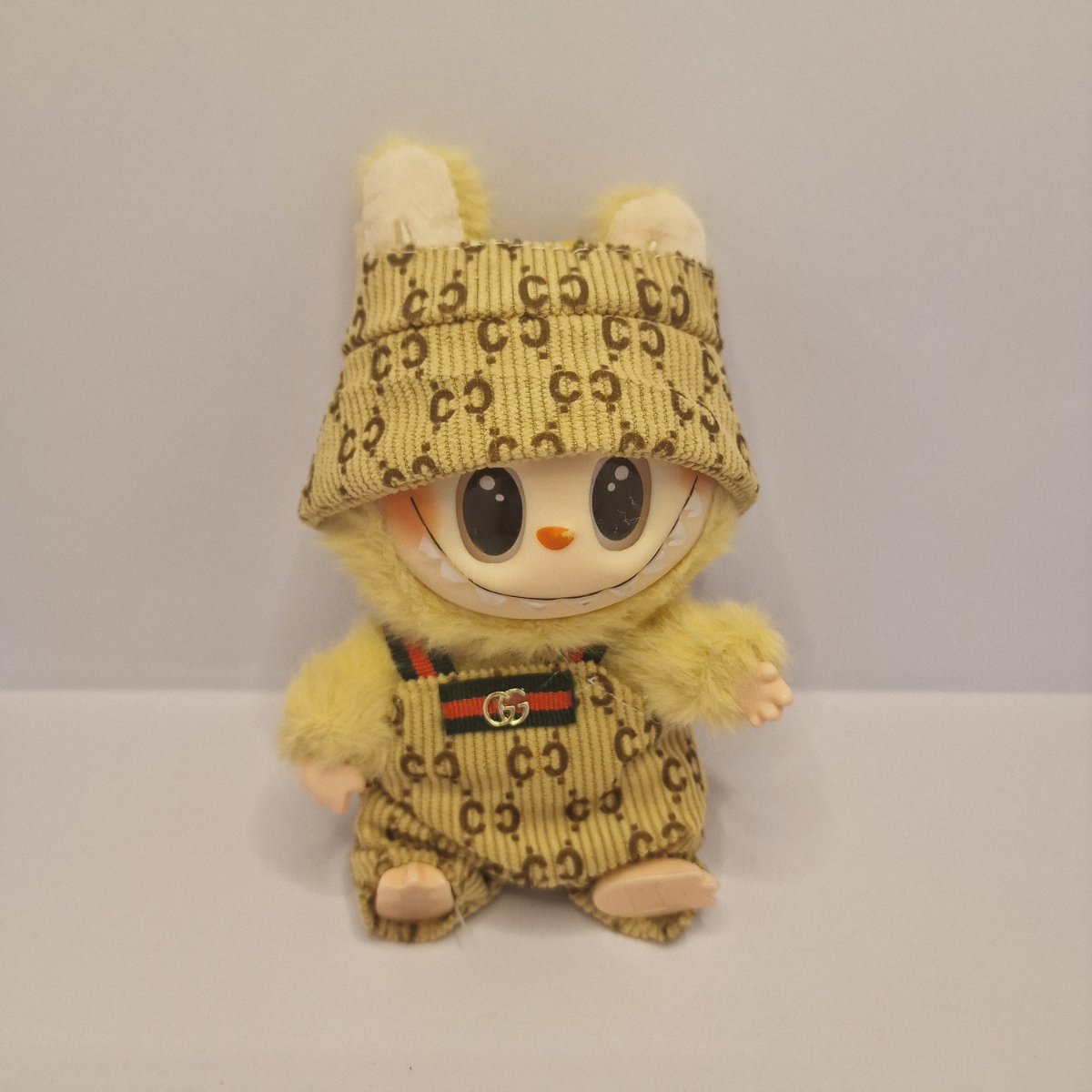 Labubu “Fashion GG Collection” apresenta cinco versões exclusivas, todas vestidas com macacão GG monogramado e boné bucket a condizer.