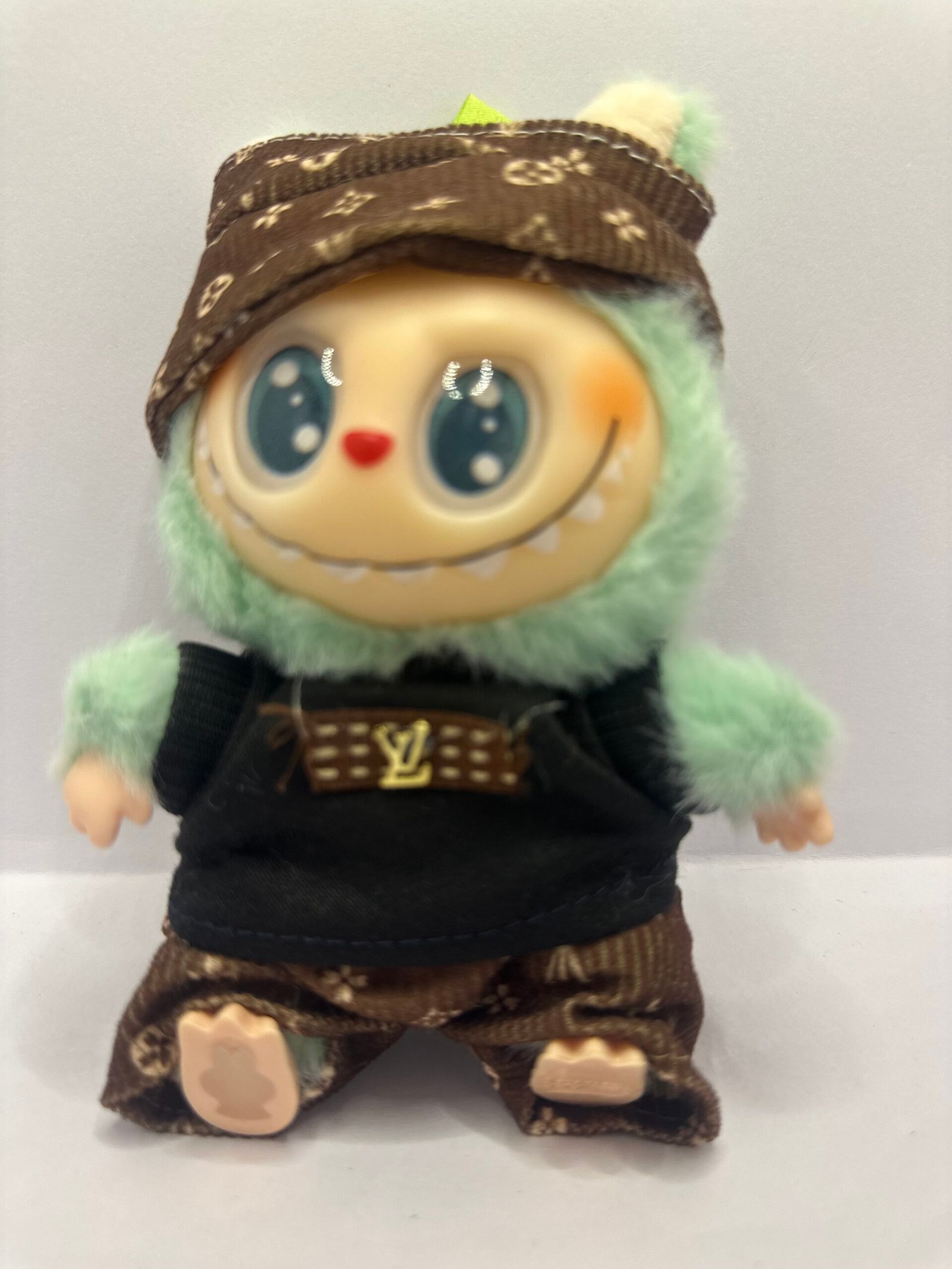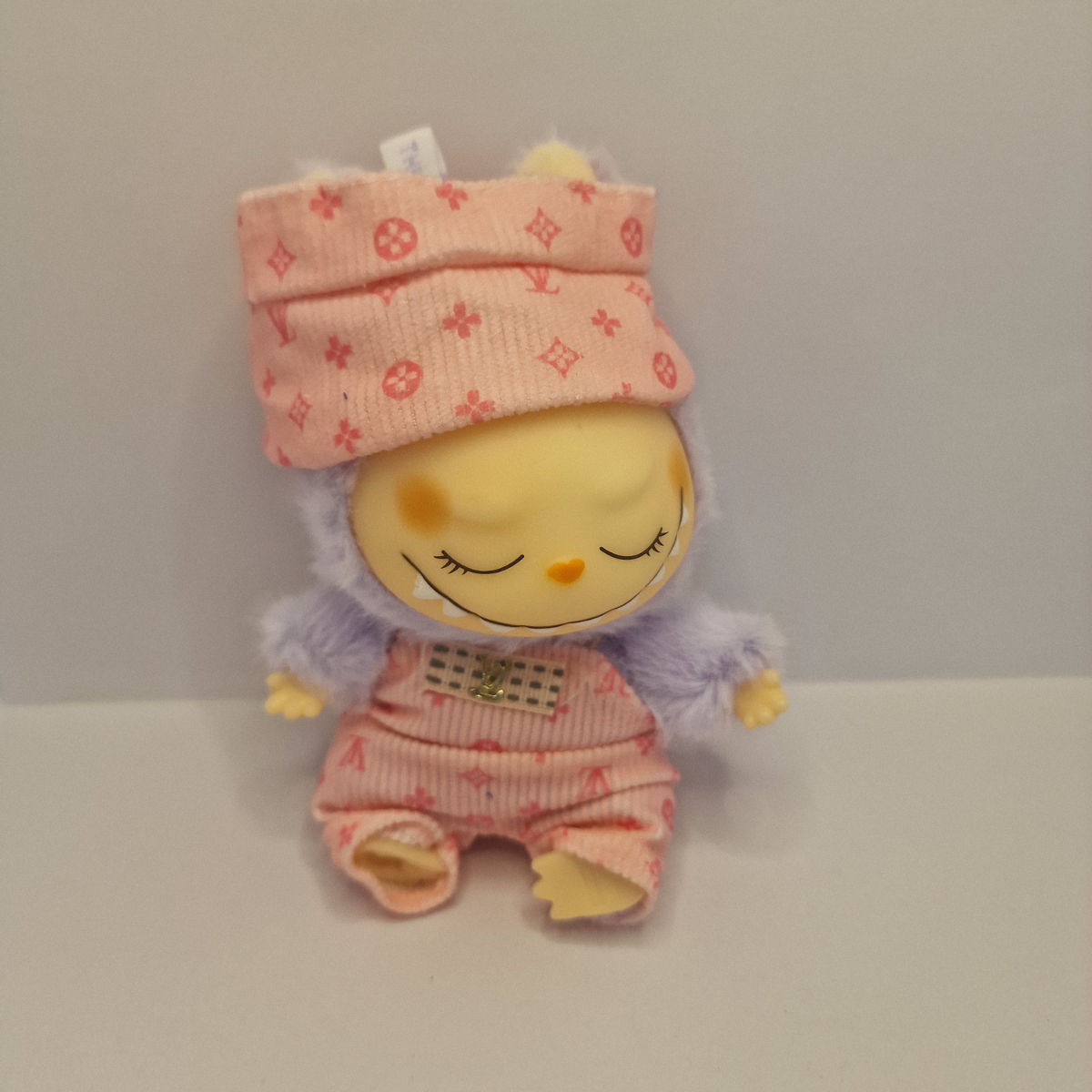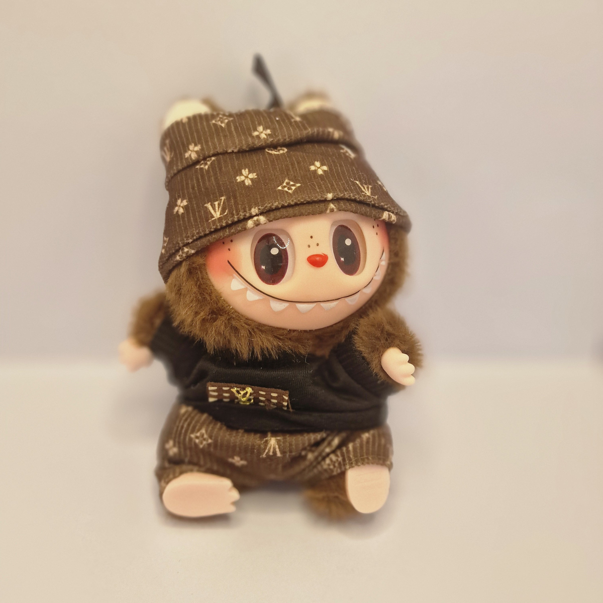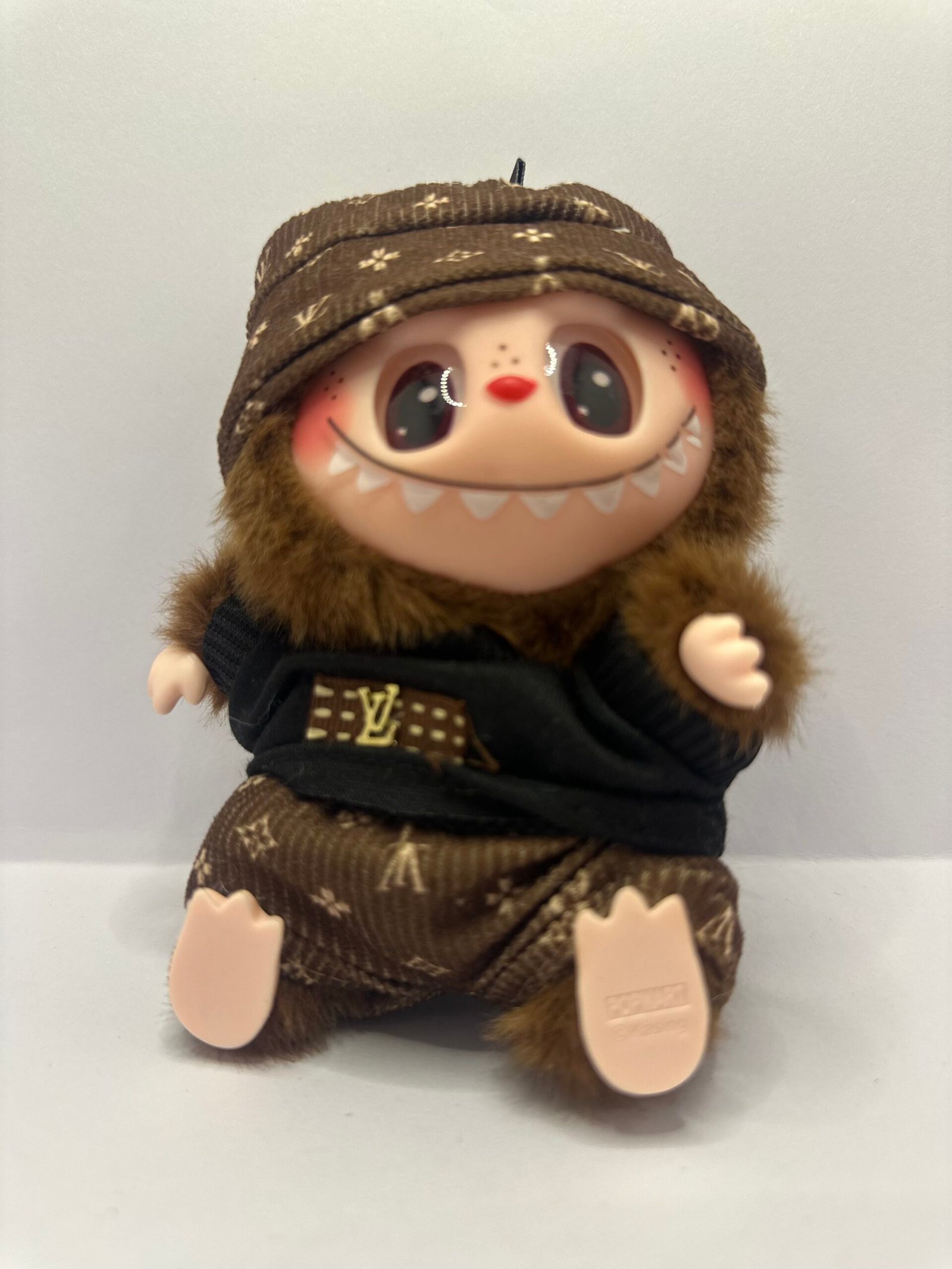 Labubu “Fashion LV Collection” reúne seis figuras de 12 cm com macacão monograma e gorro coordenado. Tens três designs em rosa pastel e três em castanho vintage, cada qual com expressão diferente.