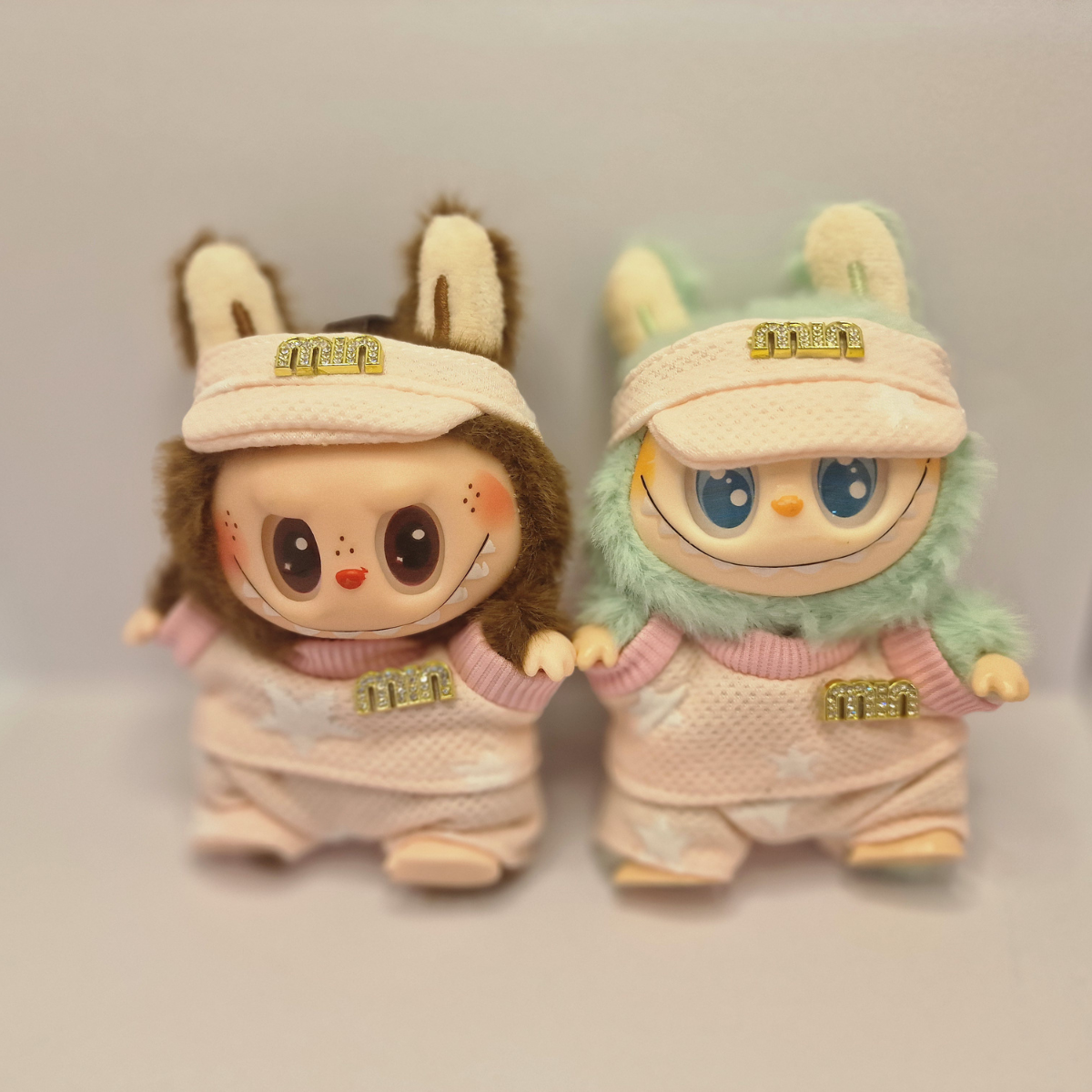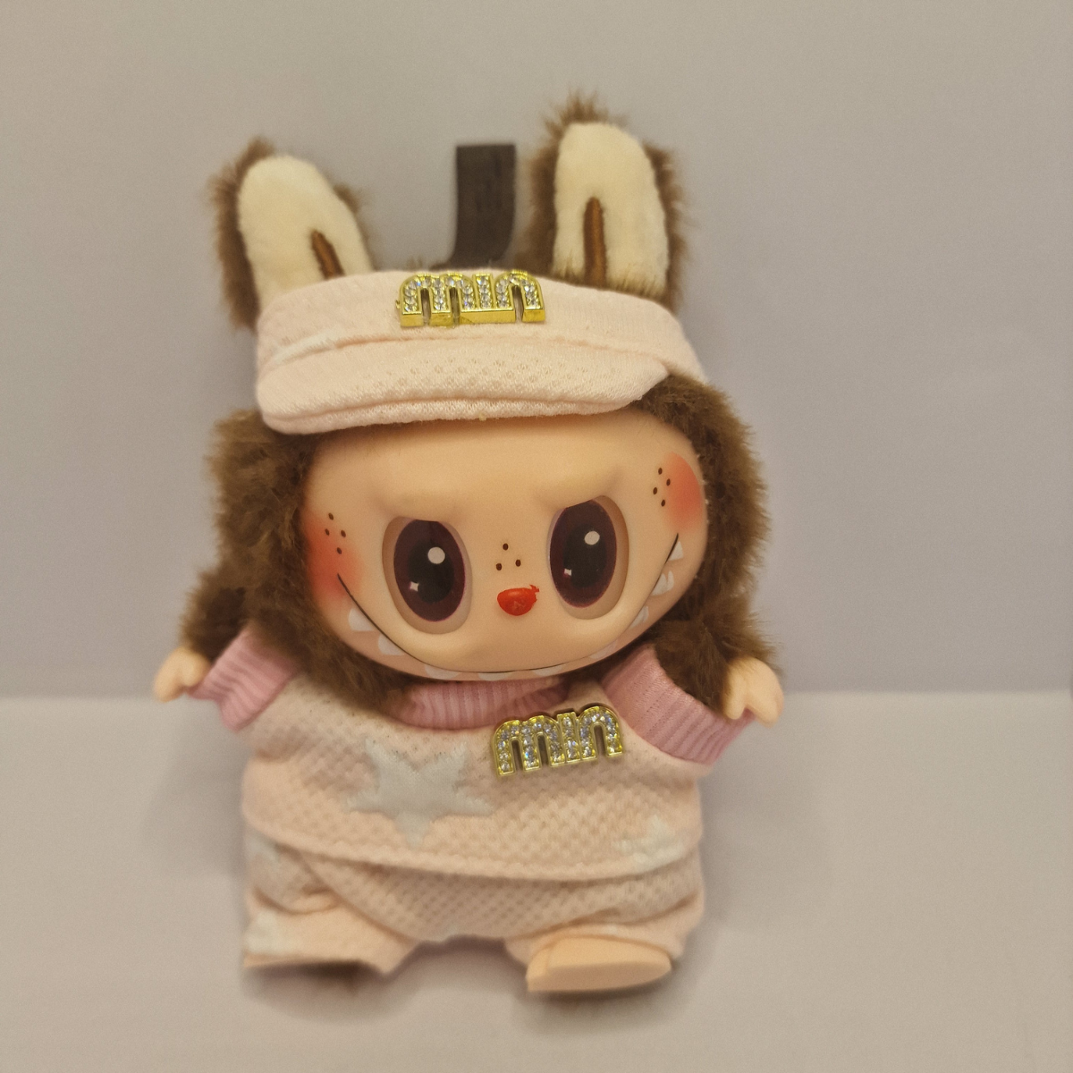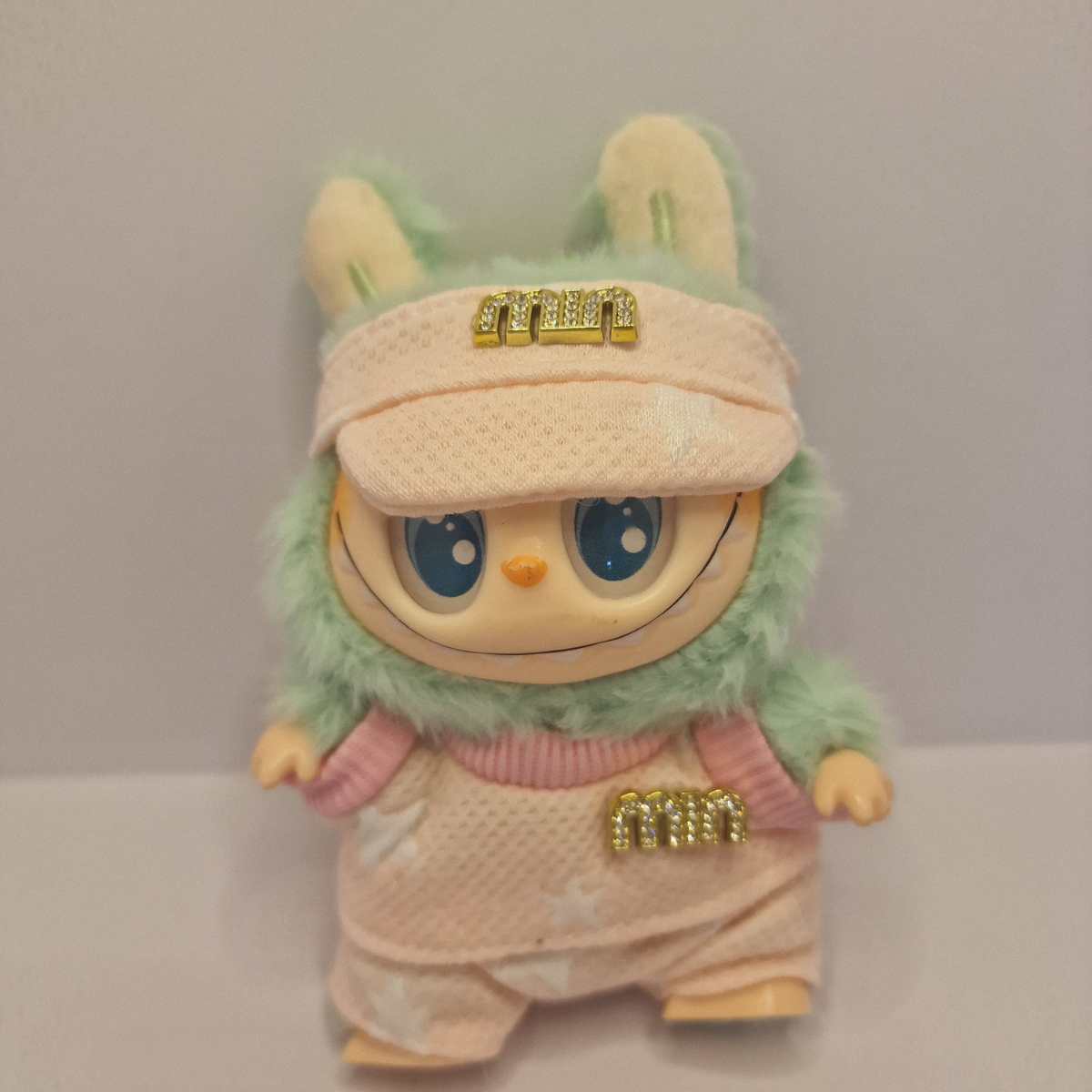 Labubu “Fashion MM Collection” traz quatro figuras de 12 cm vestidas com fato rosa-pastel texturado, gorro visor em tecido piquê e pin dourado “MM”.