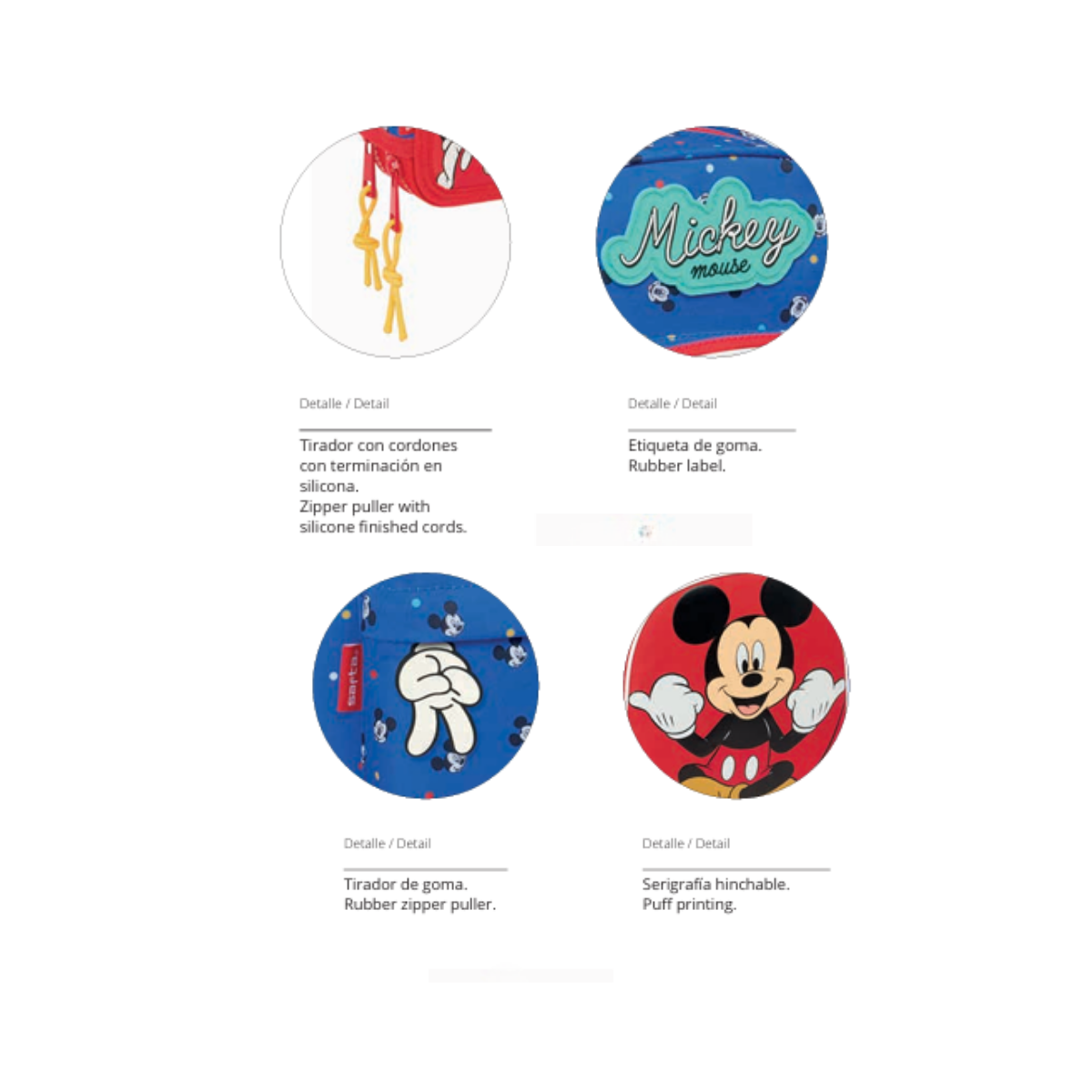 Etiqueta em borracha com o logo “Mickey Mouse”;