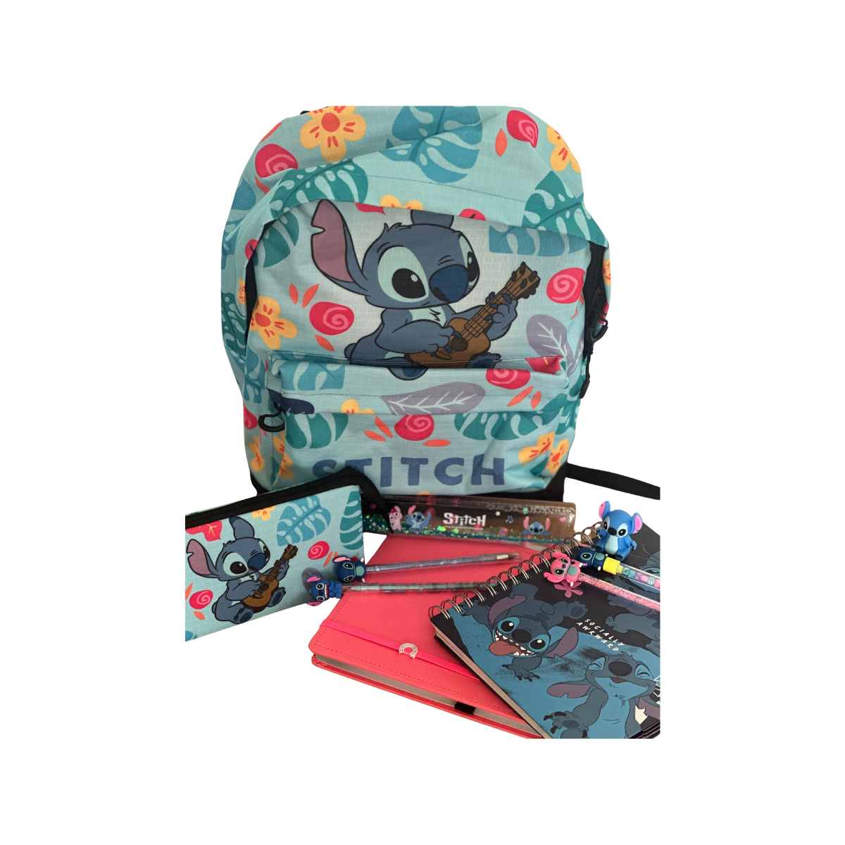 Com um design vibrante e colorido, estampado com o Stitch tocando ukulele, esta mochila une funcionalidade e diversão em um só produto.